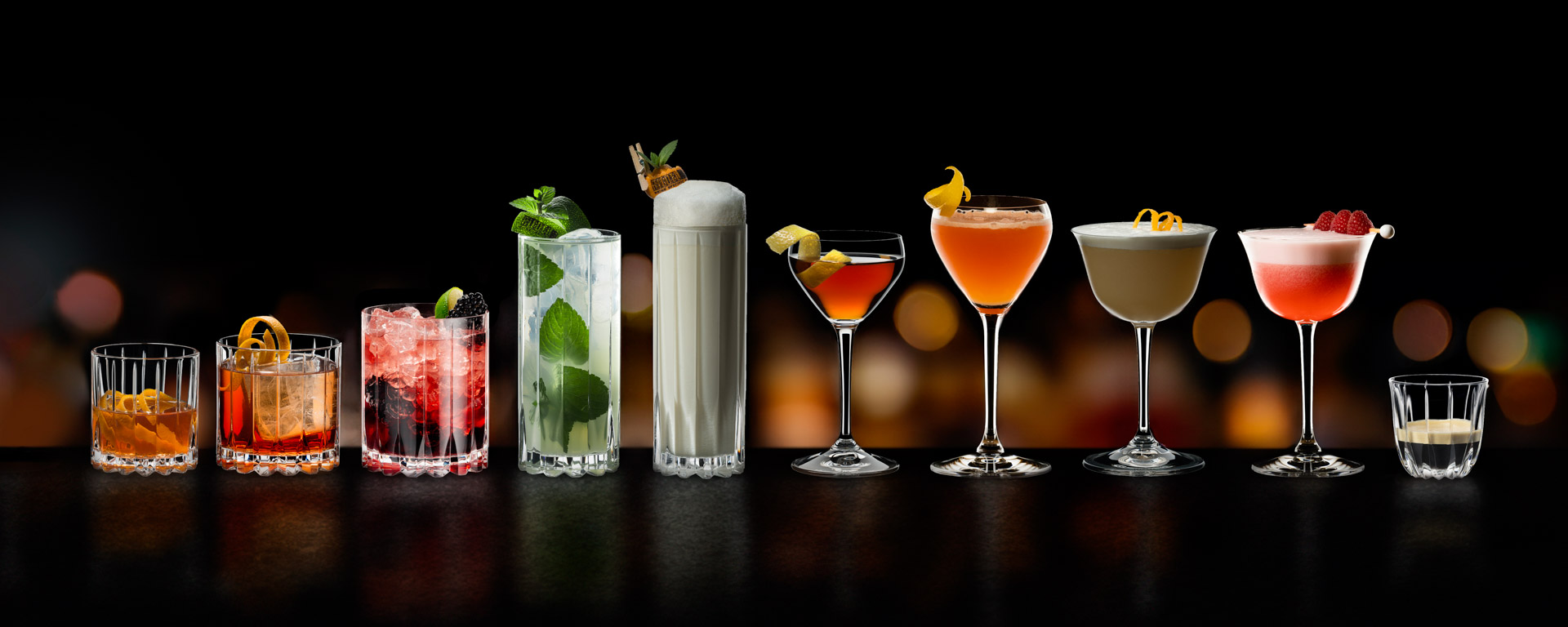 Questa collezione risponde alla necessità di disporre di bicchieri specifici per ogni cocktail e include sei bicchieri perfetti per migliaia di drink: Neat, Rocks, Double Rocks, Fizz, Highball, Nick & Nora Sour e Coffee.